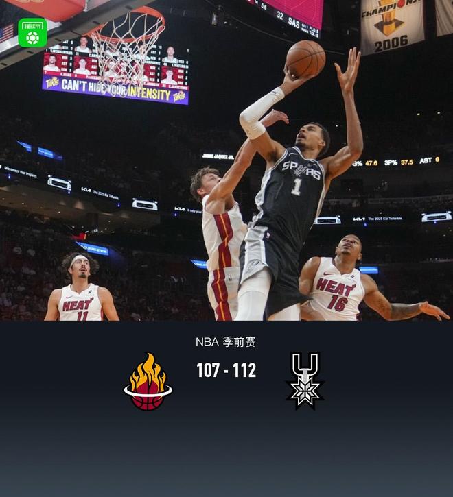 馬刺112-107逆轉(zhuǎn)熱火,文班10+4+5,凱爾-韋爾空砍29分 -