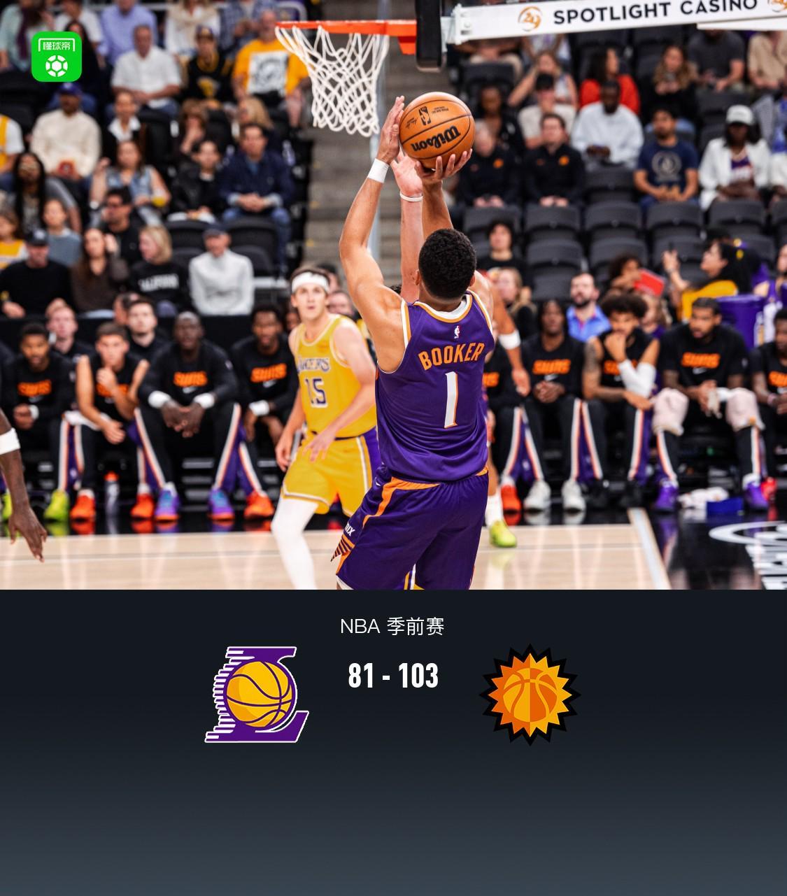 北京時(shí)間10月4日NBA 季前賽,洛杉磯湖人對陣菲尼克斯太陽。半場湖人44-57太陽,最終湖人81-103太陽。