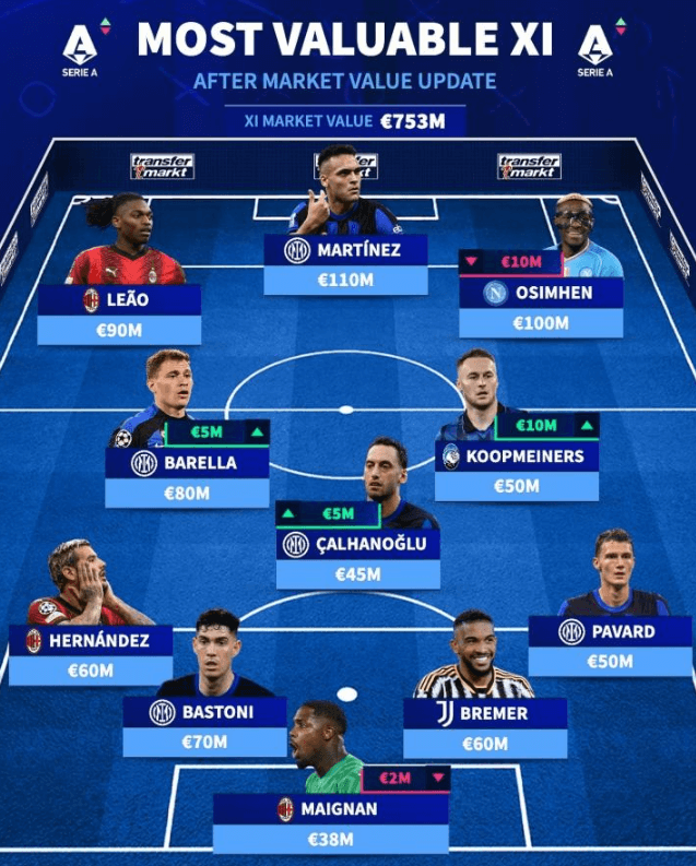 德國(guó)轉(zhuǎn)會(huì)市場(chǎng)網(wǎng)站公布意甲最貴陣容 -