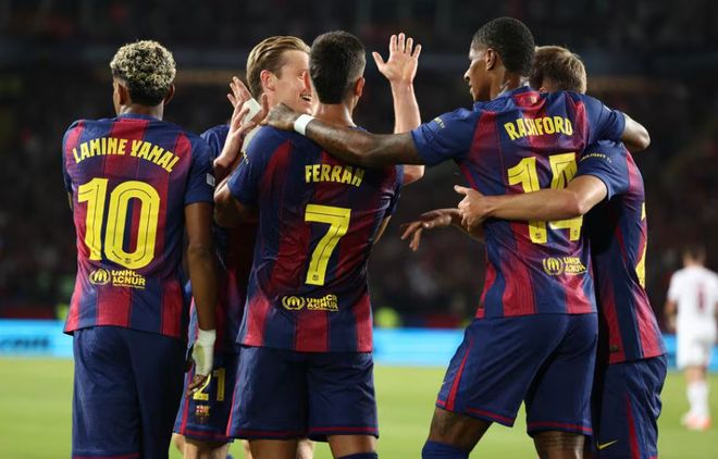 巴薩首發(fā):25-什琴斯尼、5-庫巴西、18-赫拉德·馬丁、23-孔德、24-埃里克·加西亞、8-佩德里、20-奧爾莫、21-德容、14-拉什福德、10-亞馬爾、7-費(fèi)