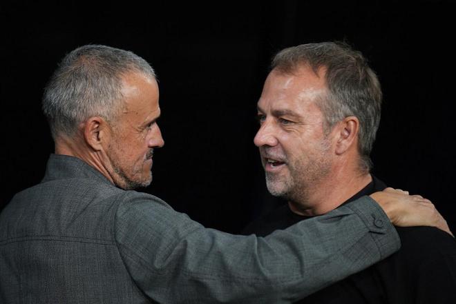 恩里克(左)和弗里克(右)在賽后交流,他們在這個賽季的斗法才剛開始。