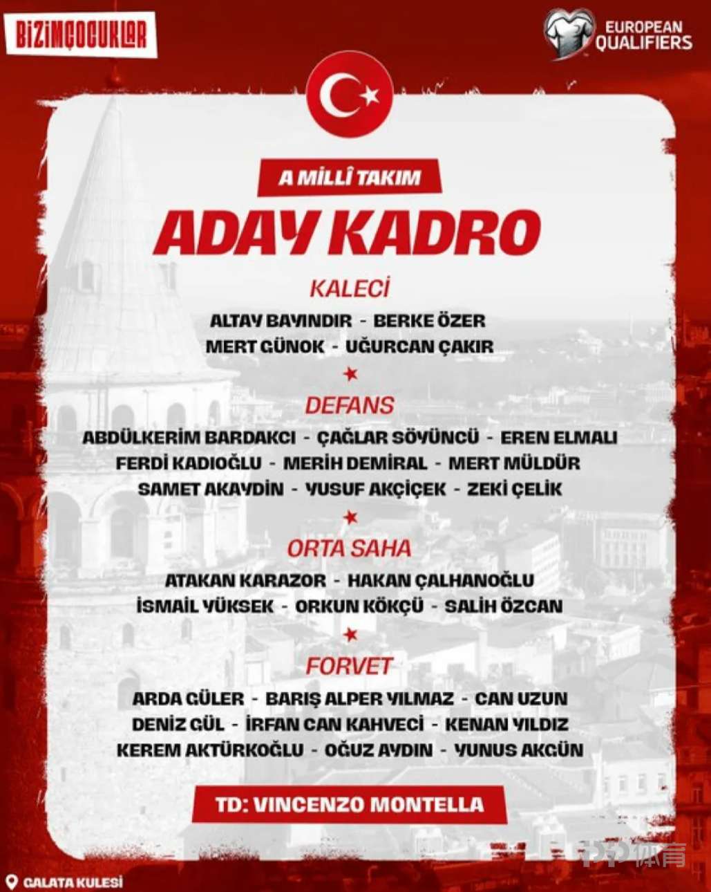 土耳其大名單:恰爾汗奧盧領(lǐng)銜,伊爾迪茲、居萊爾在列 -