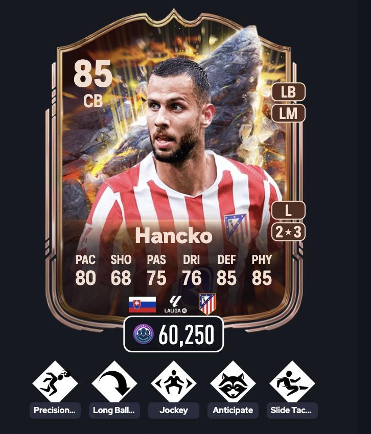 基石漢茨科:銀精準(zhǔn)頭球、長傳、螃蟹步、狐貍、滑鏟,造價約6萬金幣。